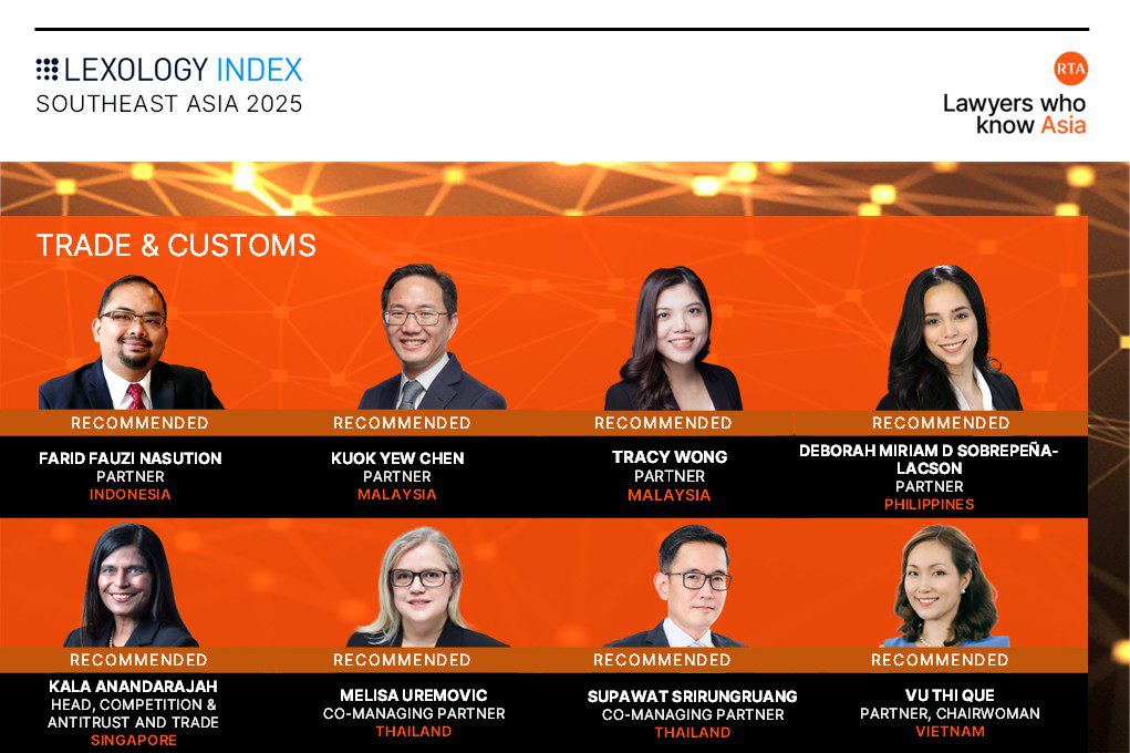Rajah & Tann Asia’s Regional Trade & Customs team continues to lead the way across Southeast Asia, with 8 lawyers recognised in Lexology Index: Southeast Asia 2025