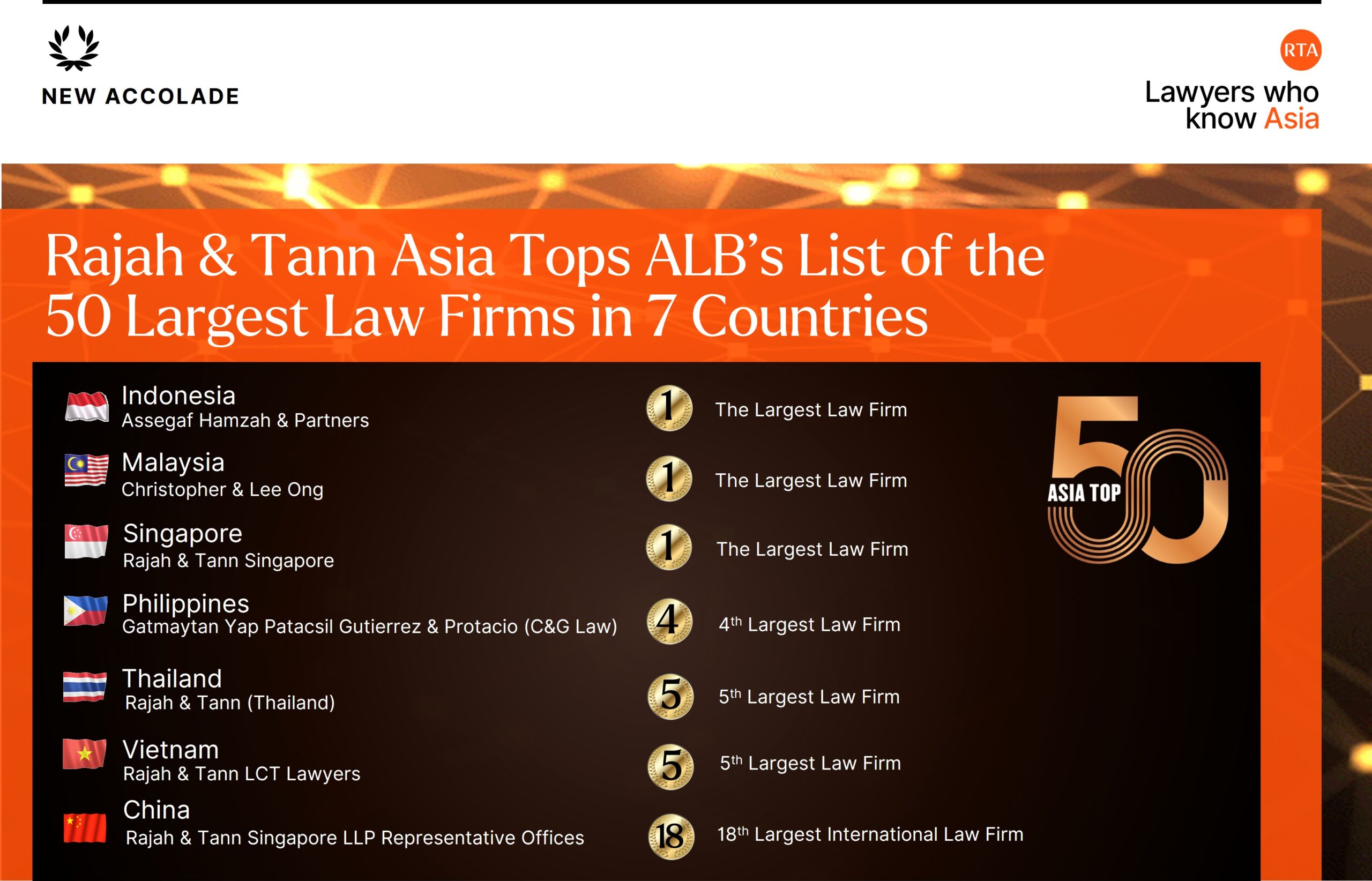 Rajah & Tann Asia Tops the ALB Asia’s Top 50 Largest Law Firms 2025 Rankings